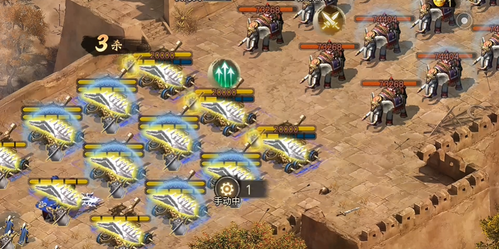 第二位出场曹操穿戴驱虎套装,不携带副将,依靠套装带来的平砍优势打出不被格挡的稳定伤害,用五排兵力兑换敌方两排主力,在残血阶段释放战法,为后续上场的武将覆盖四排护盾,大幅提升生存能力,御宝搭配防御与血量属性,保证站场能力与战法顺利释放,这一步是衔接输出与保护核心的关键节点。