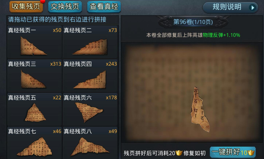 经文残页是乱斗西游中用于强化和提升经文效果的重要道具,合理使用能够显著增强英雄战力。获取途径主要包括经文夺取、活动奖励和日常任务等,建议优先通过经文夺取玩法积累残页,这是最稳定的来源。需不同品质的经文强化消耗残页数量不同,普通经文每次强化消耗15个,稀有30个,史诗60个,传说120个,因此要合理规划使用优先级。