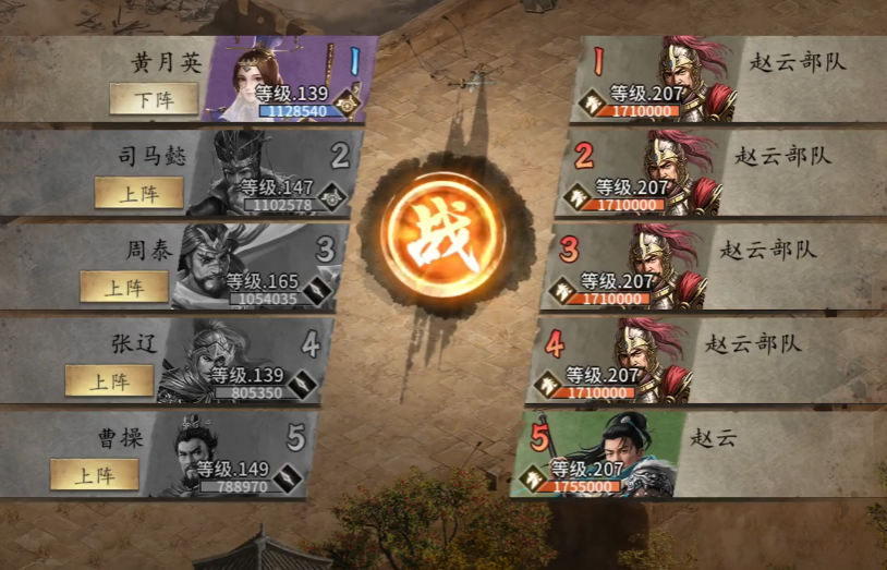 战法释放时机很关键,周瑜要在第三排被克制后立刻转为自动模式,这样能保证连续封住第二个部将的战法。赵云上场后要确保他的战法能砸在对面关键排数上,如果运气好触发第二次战法就能大幅降低难度。记得给主力武将穿上增加血量的装备,因为NPC的攻击力非常高,稍有不慎就会被秒杀。