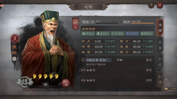 主政官和税务官等全局型内政武将,需根据玩家的发展阶段选择马匹。前期推荐携带减少城建时间的马匹,例如曹丕的戮力上国能够缩短设施升级周期,加速玩家发育。中后期若资源充足,可改为全资源产量加成的马匹,如张昭的功勋科举能够提升整体资源收益。马匹的选择需灵活调整,以适应玩家不同阶段的战略需求。