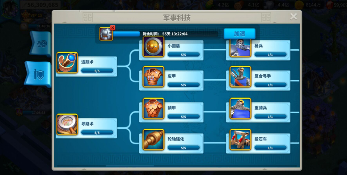 科技研发的顺序也很重要,经济类和军事类得两手抓。经济科技优先点研究加速、建筑加速和采集速度,军事科技则优先训练加速和兵种属性提升。前期别浪费加速在科技上,建筑才是大头,加入活跃联盟能加快研发进度。中期开始要注意平衡,比如数学和工程学能大幅缩短研发和建筑时间,早点研究出来收益很大。军事科技方面,根据你玩的兵种来点,步兵就优先步兵相关科技,骑兵就点骑兵的。