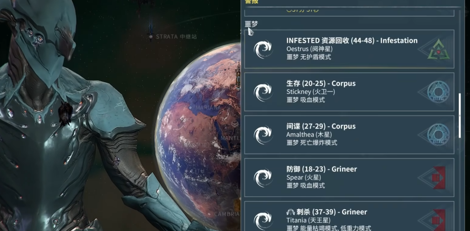 解锁噩梦任务的前提是完成目标星球所有普通节点任务,包括黑暗地带和开放地形。每个已解锁的星球会每隔8小时随机刷新一个噩梦任务节点,地图上会以猩红色背景的白色漩涡图标标注。任务难度显著高于普通模式,常伴随无护盾、能量流失等特殊限制条件,建议组队挑战以提高成功率。任务完成后系统会随机发放一张噩梦MOD作为奖励,但具体种类不可控。