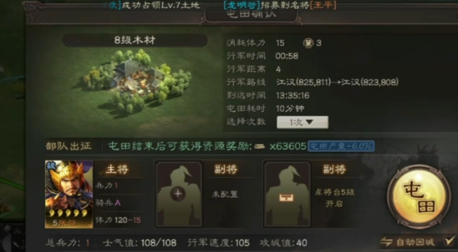 游戏内存在智能征兵与营帐征兵两种特殊机制。主城征兵处支持设置预备兵自动补充,能根据战损情况智能分配兵力;而在野外作战时,建造营帐可实现就地征兵,但需消耗3小时建造时间。营帐征兵虽不受主城队列限制,但速度较慢且需要提前规划位置。两种方式配合使用能有效解决远征时的兵力补给问题,尤其在对抗西凉军等中立势力时尤为重要。