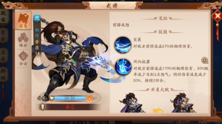 魏国英雄的选择直接关系到你的阵容强度和游戏体验。首先推荐重点培养许褚,他是魏国当之无愧的主C,拥有极高的单体爆发能力,无视防御的暴击属性让他在PVP和PVE中都能快速秒杀对位目标。其次是夏侯惇,作为红将中的佼佼者,他的横排输出附带眩晕控制,对生命值高的敌人还有额外伤害,无论是推图还是竞技场都非常实用。张郃也是核心选择之一,十字范围的高暴击伤害配合闪避属性,能同时担任输出和伪坦的角色。