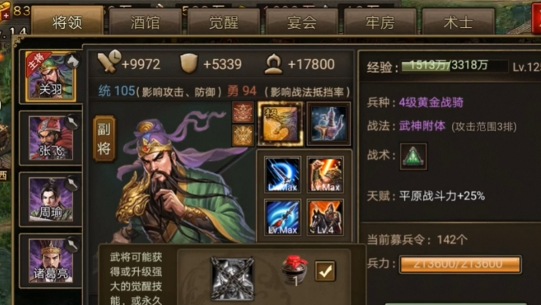 新手阶段资源有限,建议优先培养1-2个核心武将,比如关羽或张飞,他们攻防均衡,能适应大部分战斗场景。骑兵武将虽然机动性强,但前期培养成本较高,可以等资源充足后再考虑。记得留意武将的觉醒条件,部分武将觉醒后会有质的飞跃,但觉醒需要消耗大量资源,前期可以先攒着,等中后期再集中投入。