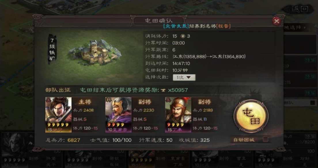 在兵力不足时可以采用分批次进攻策略,首次挑战可派遣次级武将带队消耗守军兵力,5分钟内再派出主力队伍完成占领。日常资源采集应当优先保证石料供应,因为前期建筑升级对石料需求最大。同时要注意放弃低级土地为高级土地腾出空间,领土数量随声望增加而提升,需要动态调整领地结构。屯田操作应当在策书爆满时及时进行,确保资源供给稳定。