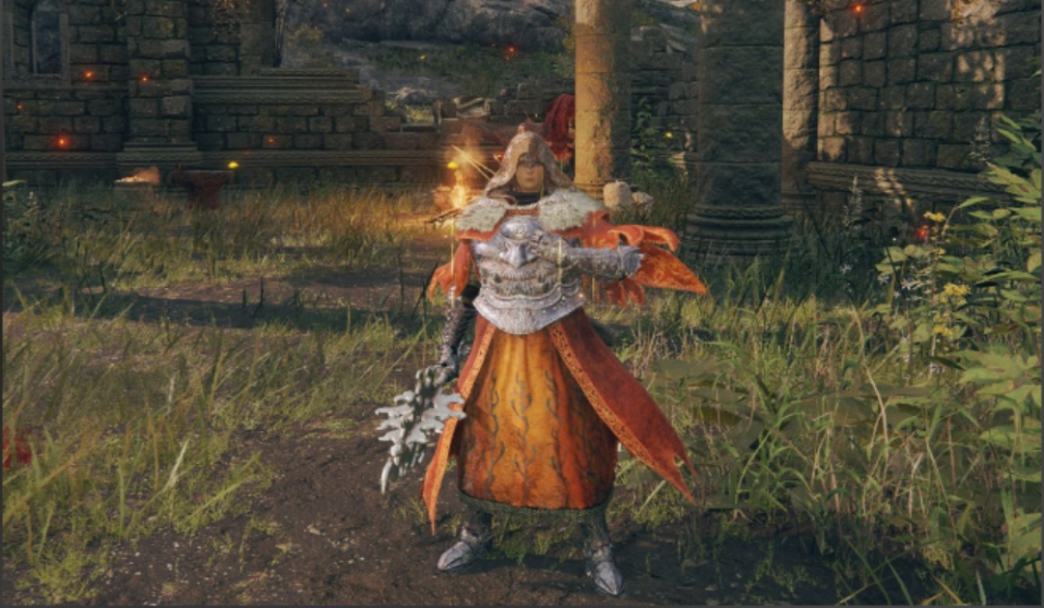 刷装备时记得带上增加掉落率的护符,比如银色泪滴面具或者银色粪金龟,能少受点反复刷怪的折磨。如果觉得单挑吃力,可以召唤骨灰帮忙,比如仿身泪滴或者黑刀狄希,吸引火力后咱们专心输出就行。墓地里的双BOSS战稍微有点难度,但掌握节奏后不算太难,主要别被他们的火焰连招逼到墙角。拿到套装后可以试试火焰骑士流派的玩法,搭配火焰穿刺战灰或者梅瑟莫的火焰祷告,伤害和视觉效果都爆炸。头盔自带强化火焰战技的效果,铠甲还能增强特定祷告,属于攻守兼备的套装。