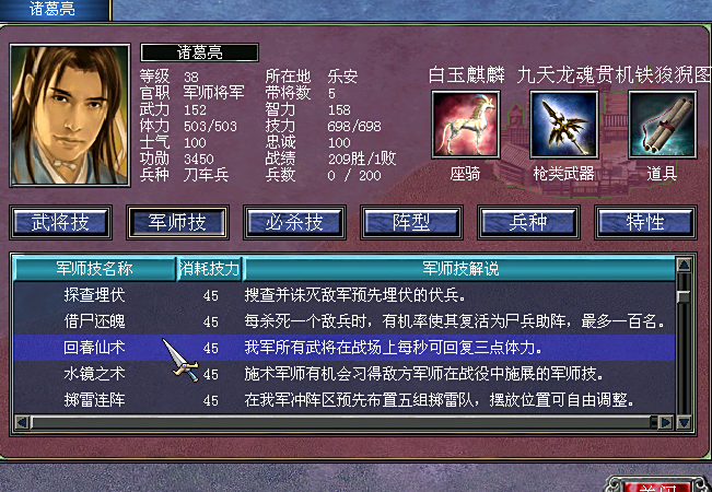 赵云绝对是综合实力最强的武将之一。他拥有迅雷、飞马和骁勇三大特性,攻速快、移动灵活,必杀技释放频率极高,尤其是专属必杀银龙逆鳞枪在战场上清兵效率一流。智力也不低,能胜任文武官职,属于全能型选手。