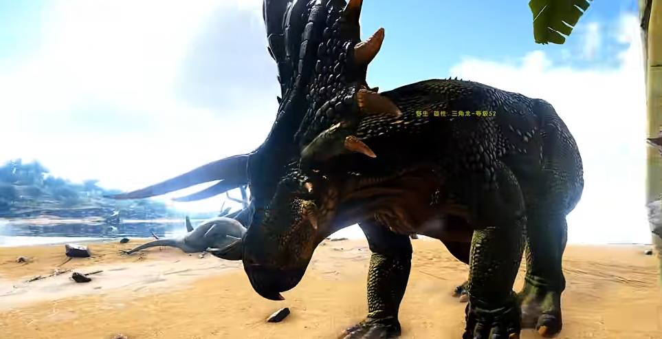 驯服后的三角龙在资源采集中表现出色,其特殊技能可提高浆果获取效率。作为负重型生物,其移动速度较慢但头部甲壳能有效抵御正面攻击。在团队协作中,三角龙常被用作移动储物单元或初级战斗护卫,其性价比在游戏前期阶段具有不可替代性。