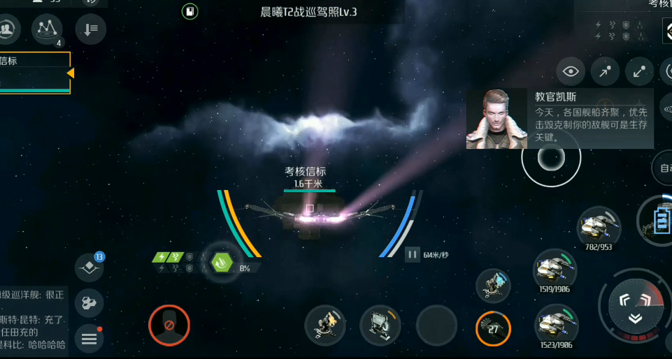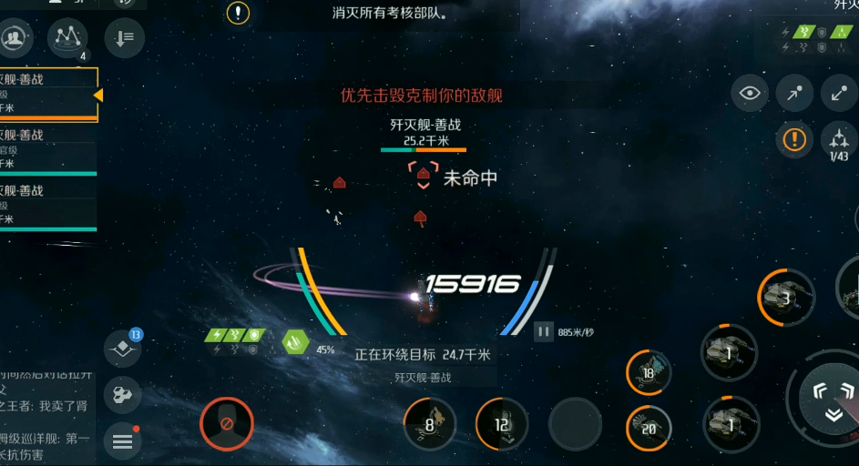 战斗开始时记得反向拉船头拉开距离,保持40km以上的安全射程。如果敌人靠近,可以开加速器调整位置,但别频繁使用,太耗电。能量快见底时立刻开回充器,别省着用。护盾压力大就开护盾生成装置,稳住血量。目标优先级很重要,先集火脆皮单位,剩下的慢慢磨。