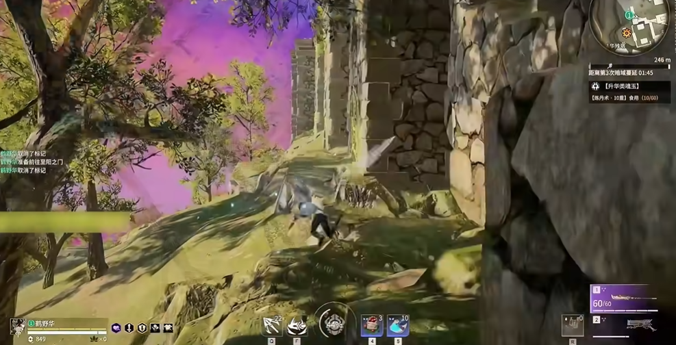 不同武器对壁击的影响挺大,空手是最灵活的,在树干和圆柱上都能秒放壁击。匕首的壁击出手快,前摇短,适合快速突袭。长剑壁击后可以接右键连招,比如BCBAA这套,但要注意别用BSB,因为僵直不够会被闪避。阔刀和长枪的壁击前摇稍长,更适合预判对手位置再出手。遇到多人追击时,光靠壁击可能跑不掉,最好结合钩锁和地形迂回。平时可以多去训练场练练手感,熟悉各种墙体和树木的吸附点,实战时才能更得心应手。