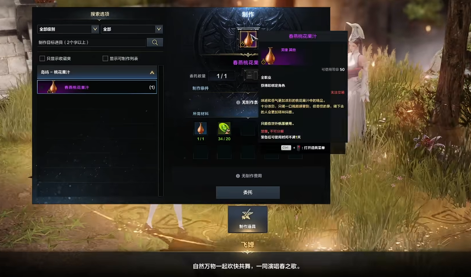进入世外桃源后,玩家需完成每日刷新的任务和隐藏任务,以获取兑换材料饱满的桃子和武陵花的露水。隐藏任务的触发方式包括打破封印石拯救聪慧兽,或在固定区域与其他玩家合奏乐谱春之歌,演奏成功后地图会出现巨型桃子,打破后可获得大量材料。在地图的武陵花旁演奏春之歌可触发开花效果,掉落随机数量的露水。