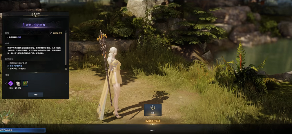 任务最后阶段需将收集的3个森林的声音交给隐藏妖精。该NPC位于岛屿右侧被藤蔓缠绕的山洞附近,需使用共鸣之歌进入山洞并在黄圈内再次弹奏。完成全部步骤后,任务奖励包含森林小步舞曲乐谱,该道具可用于后续其他隐藏区域探索。