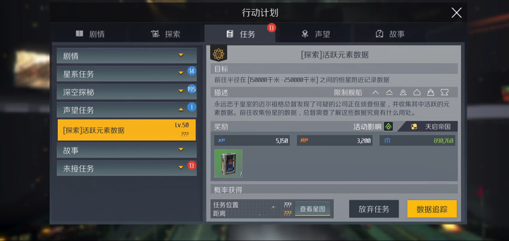 声望任务分为战斗、探索和捐献三类,战斗类收益最高但风险大,适合装备成型后挑战;探索类安全稳定,隐身舰船能轻松完成;捐献类简单但消耗资源,更适合资源充足的大佬速刷。初期建议以探索任务为主,慢慢积累声望等级,从中立刷到崇拜需要耐心,每提升一级都能解锁更高级的代理人和丰厚奖励。记得和势力签署协议,能额外提高声望和荣誉点获取效率,这可是白嫖福利哦。