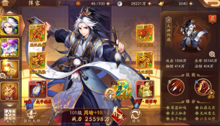 周瑜作为核心输出武将,其灼烧和眩晕效果对敌方阵容威胁极大。针对他的防御策略需从阵容搭配、站位调整、技能克制等多方面入手。建议优先选择拥有高免伤或净化能力的武将,例如曹操、典韦等肉盾型角色,这类武将能有效抵挡周瑜的爆发伤害,同时通过免伤效果减少灼烧的持续伤害。配备具有群体治疗或驱散效果的辅助武将,如小乔或华佗,能及时清除灼烧状态并恢复团队血量。