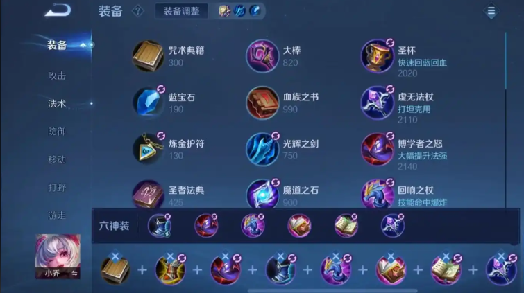 小乔一般有两种主流搭配。第一种是常规的暴力法师出装,先来双秘法之靴,加点儿法术穿透和移动速度,这样前期对线就不怕吃亏了。接下来买回响之杖,不光加伤害,还能在技能打中时炸个小范围,清线快得很。接着出痛苦面具和博学者之怒,这样中期伤害就蹭蹭往上