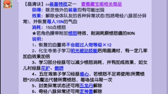 首先就是晶清诀和罗汉金钟这两个大特技,它们常常被称作团队的保命符。晶清诀可以在关键时刻一下子解除全队的异常状态,比如被对手封得动弹不得的时候,一个晶清就能瞬间盘活整个队伍,而且还能回复一些气血。罗汉金钟则是应对敌方法术轰炸的神技,使用后能让团队在三回合内受到的法术伤害减半,在对付法系输出强势的队伍或者挑战高难度的天罡地煞时,有没有罗汉完全是两种游戏体验。一个合格的封系,想办法带上这两个特技中的一个甚至两个,是对团队负责的表现。这两个特技消耗的愤怒值也很高,所以通常需要搭配愤怒腰带使用,这样才能更快地攒够怒气释放出来。