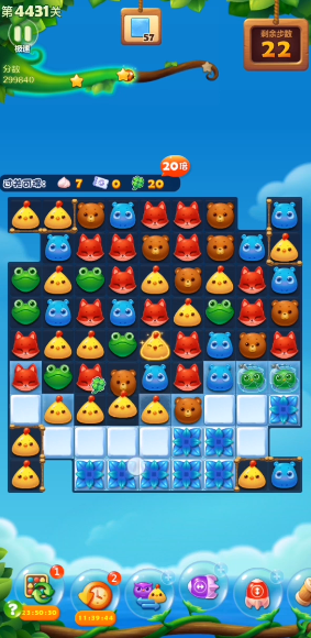 连消不仅能节省步数,还能自动填充空缺,为后续操作创造机会。避免急于消除单个元素,而是着眼于全局,优先处理能引发多轮消除的区域。通过激活这些元素,玩家能随机孵化小黄鸡或变换动物颜色,从而快速达成收集目标。注意毒液或章鱼的干扰,及时消除它们以防止局面失控。当障碍物数量减少时,玩家应聚焦于剩余冰块的清除,尤其是底部或边缘的顽固区域。利用魔法石或花团的引爆,能间接处理难以直接触及的位置,从而平稳过渡到通关阶段。