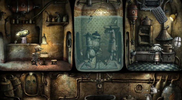 获取钥匙是推进剧情的关键步骤之一。玩家首先需要上楼找到一个拥有巨大脑子的机器人,与他对话后可以了解主角回忆被当作垃圾带走的原因。对话结束后会出现一个小游戏,要求将三个绿色的球移动到同色的区域。完成这个小游戏后,玩家可以解开两个锁,从中获取一个插线头,将这个电源插入之前遇到的机器人身上,从而触发新的互动环节。
