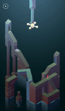 在后续流程中会出现图腾机制,图腾会角色移动而显现,玩家需骑着图腾沿路线移动到最左侧按钮处以完成场景切换。进入全新区域后,使用场景左侧按钮上的图腾并通过旋转模板将其移动至左侧建筑物顶部,之后前进到台阶上方按钮处使图腾逐渐升起。激活道路旁的按钮模块后台阶旁会出现拱形门,进入门内场景会再次变化,但图腾位置可能改变或公主暂时消失,此时需保持耐心调整视角和操作顺序。