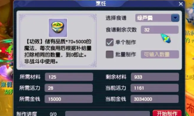 烹饪技能达到较高级别时制作的物品收益更好,其中以能恢复召唤兽寿命和提供高效状态恢复的烹饪最为值得制作。将烹饪技能至少提升至65级是基础,这样可以解锁全部种类的普通烹饪,而追求更高利润则应考虑将技能提升至100级甚至满级140级,因为技能等级直接决定了产出烹饪的品质和种类,高品质的豆斋果、长寿面、醉生梦死等物品在市场上的需求与价格都更具优势。高等级烹饪消耗的活力有上限,使得每次制作的成本相对固定,有利于稳定收益。