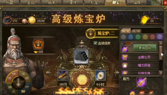 集齐材料后,需要在炼宝炉系统中进行锻造。紫色御宝的锻造过程需要消耗一定时间,并且还需要额外的烧炭时间。锻造效率与炼宝炉等级直接相关,建成5级王朝后获得的中级炼宝炉能显著缩短锻造所需时间。一个重要的资源利用技巧是,在锻造紫色御宝时,可以使用红色品质的御宝作为引子材料,这可以直接抵扣2000金币的消耗。