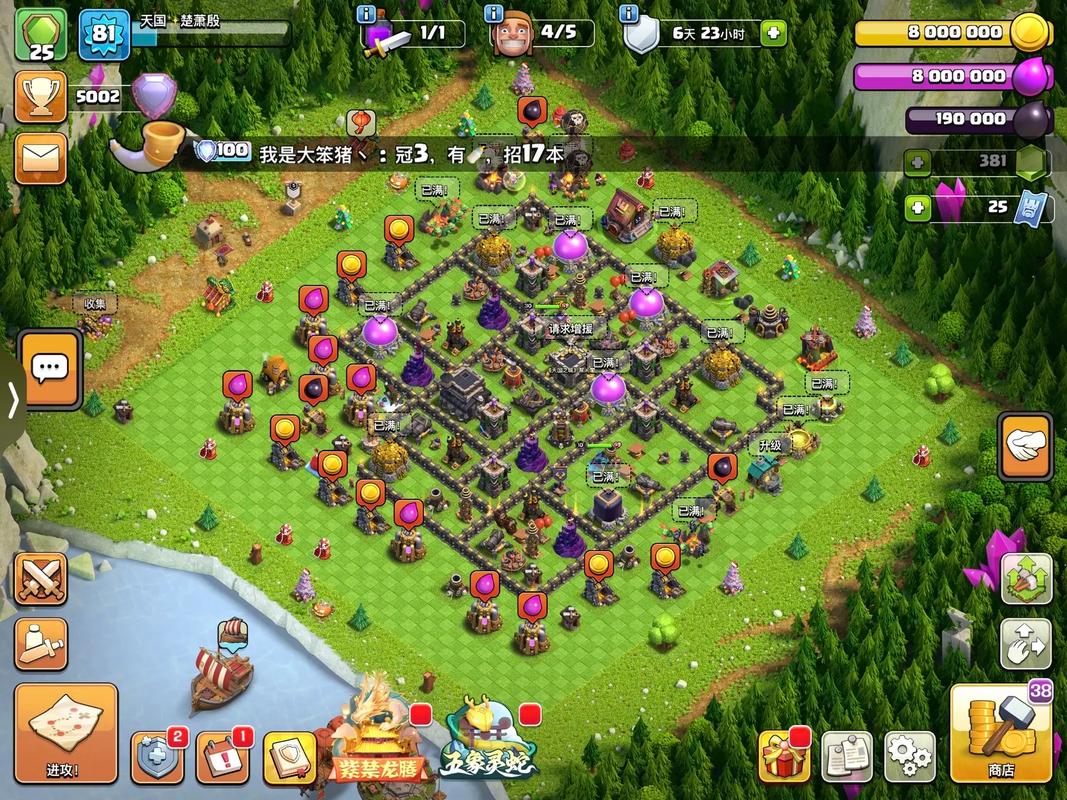 蛮王的实战玩法需精准把控投放位置与技能时机,进攻时优先避开多头地狱塔、天鹰火炮等核心重火力区域,从防御薄弱的边角切入,搭配女巫、超级野蛮人等兵种辅助清边,利用骷髅与召唤单位分担伤害。技能释放通常选择在血量降至五成左右时开启,既保证续航,又能最大化增益覆盖范围,强化周边部队战力。装备搭配首选足球与地震组合,提升破墙与范围伤害能力,面对紧凑阵型可更换为足球与灵蛇手镯,召唤灵蛇吸引火力,提升生存空间。升级优先级上,地面流派玩家需优先提升蛮王等级与核心装备,确保其抗伤与输出能力跟上大本营进度,稳定支撑各类地面战术。