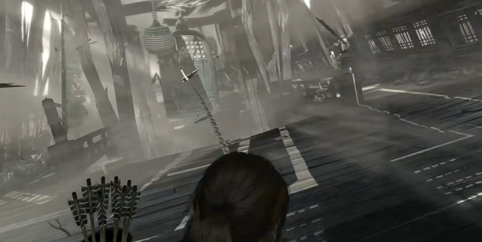 大钟谜题是游戏中的一个关键解谜环节,位于峡谷寺院的场景中。这个谜题需要玩家利用环境中的风力机制和绳索箭来操作大钟,通过破坏支撑柱最终使大钟掉落。谜题的核心在于分阶段破坏左右两侧的支撑柱,最后再破坏顶部的横梁。玩家需要找到场景中的两扇窗户,它