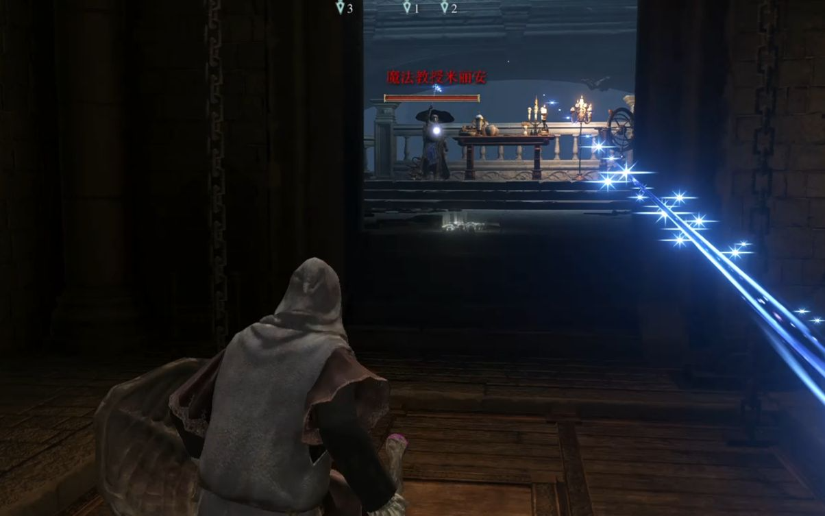 进入颠倒书斋后,需击败魔法教授米丽安。该BOSS会使用高伤害的魔法箭和瞬移技能,建议贴身近战并利用其攻击间隔反击。击败后可获得魔法镇定。随后需从电梯井一路向下跳跃,利用吊灯和房梁作为落脚点,最终到达底部升降机。