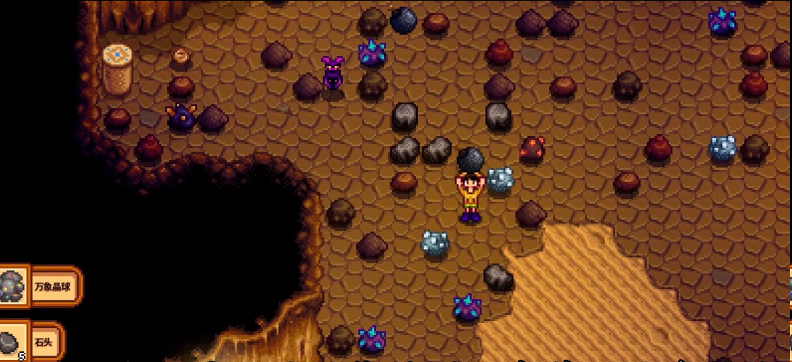 最后沙漠矿洞的难度比普通矿洞高很多,怪物血厚攻高,记得带够食物和炸弹。推荐选运气好的日子去,这样更容易找到楼梯和地洞,能快速下到深层挖矿。如果时间不够,可以用沙漠图腾直接传送过去,省时省力。