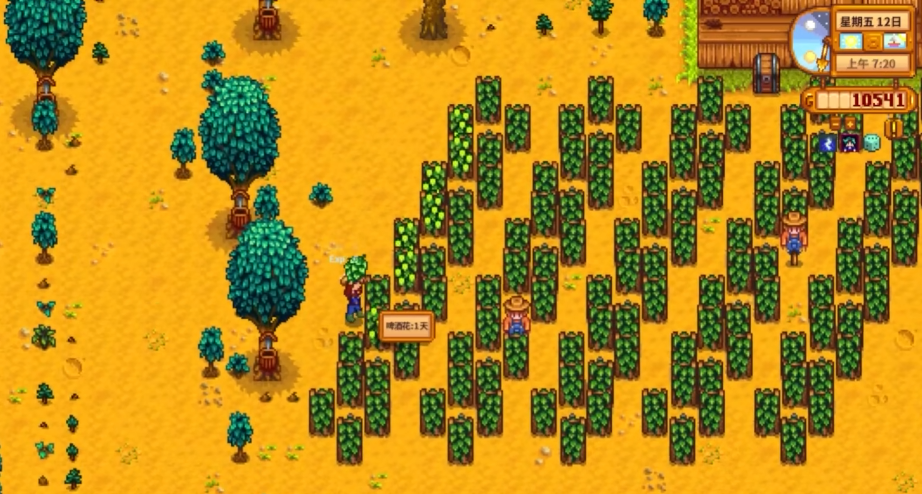 啤酒花虽然单价不高,但配合酒桶酿酒后收益会大幅提升,每天都能收获的特性让它成为后期玩家的宠儿。小麦作为夏秋两季作物,价格便宜生长快,还能为秋季提前准备好耕地。夏季亮片花朵色彩艳丽,不同颜色售价不同,最高能卖到135金币,还是卡洛琳最爱的礼物。香豌豆花虽然没什么经济价值,但它是沙漠商人和村里小女孩喜欢的礼物。