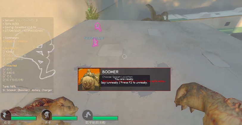 操作技巧上,幸存者阵营优先为AI配备狙击枪,输入bot_allow_snipers 1提升远程支援。特感阵营则要善用Boomer的尸潮召唤和Spitter的酸液封锁,尤其是狭窄地形。Charger的冲撞适合直线突袭,而Smoker和Jockey更适合绕后干扰。如果遇到AI集体挂机,输入nb_delete_all清场重置。对抗过程中随时按tab查看比分,用warp_all_survivors_to_checkpoint可全员传送到检查点。最后记得保存常用指令,比如快速重启地图的map命令或调整视角的thirdpersonshoulder。单人对抗虽缺少真人配合的变数,但能深度练习地图机制和角色技能。