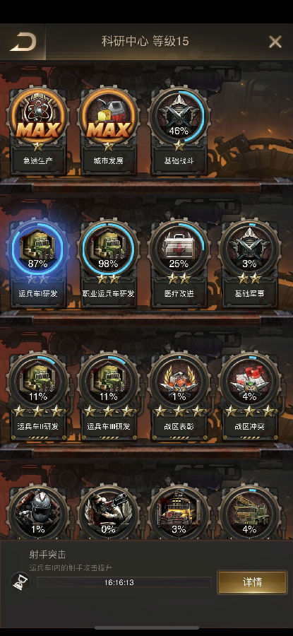 斗士职业定位为进攻掠夺,攻击玩家时获攻击、防御与掠夺加成,自身资源生产采集效率低,发展全靠主动掠夺。建筑升级优先兵营,解锁高阶兵种、提升兵力与掠夺负重,同步升勇士训练营等军事设施强化部队战力。伐木场、农田前期适度升级,中后期不盲目升满,油田、铁矿随科技需求储备,仓库保障资源安全但优先级低于军事建筑。科技研发先点满职业运兵车科技,提升战斗攻防与掠夺载重,再点基础战斗、行军速度、掠夺效率科技,联盟科技优先掠夺相关项目,属性加点七成力量提升物理爆发,剩余补生存或装备需求属性。