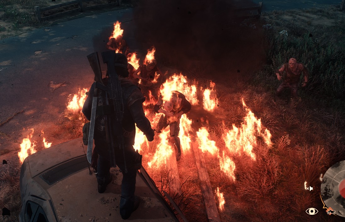 战斗启动后,先用消音武器清理尸潮外围零散丧尸,避免被多方向夹击,随后向尸群密集处投掷引诱装置,将丧尸引导至预设的油桶或爆炸物旁,精准引爆后可瞬间削减大量敌人。全程避免站桩输出,保持移动拉扯,优先选择桥梁、隘口、建筑门口等狭窄地形,让丧尸被迫扎堆前进,此时投掷燃烧瓶与炸弹能让范围伤害最大化,大幅节省弹药与道具。被尸潮追击时保持匀速移动,合理利用耐力冲刺拉开距离,不盲目翻滚浪费体力,遇到丧尸贴近时开启子弹时间精准点射头部快速清场,同时留意身后追兵数量,适时回头补投爆炸物延缓推进节奏。